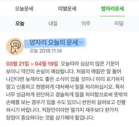 < 오늘의 운세 _ 양자리 03/21 ~ 04/19 >