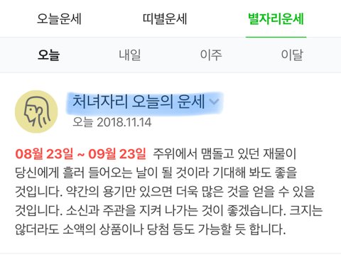 < 오늘의 운세 _ 처녀자리 08/23 ~ 09/23 >