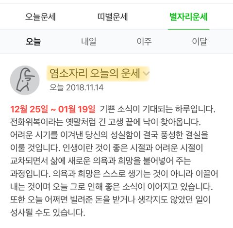 < 오늘의 운세 _ 염소자리 12/25 ~ 01/19 >