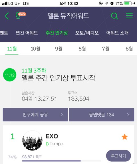 누적이라 하루도 빠짐없이 투표해야 됨. 격차 벌어지면 답 없다. 이것 말고 그외 투표도