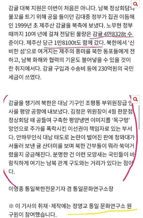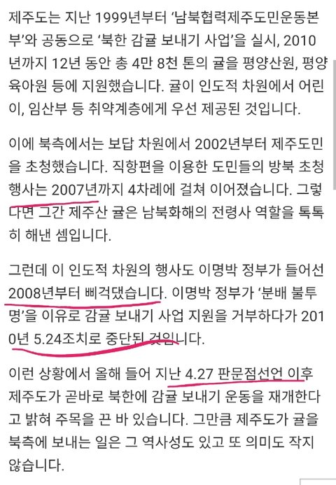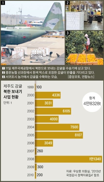 처음부터 따지셔야 하지 않을까요? 그리고 이명박, 박근혜가 북한에 엄청 퍼줬다고 하는데 귤만 봐도 보이지 않으신지? 양심이 있으신지? 언제까지 전정권 탓 하실건지? 심지어 귤 사업은 불투명하다고 이명박때부터 거부했다고 합니다.