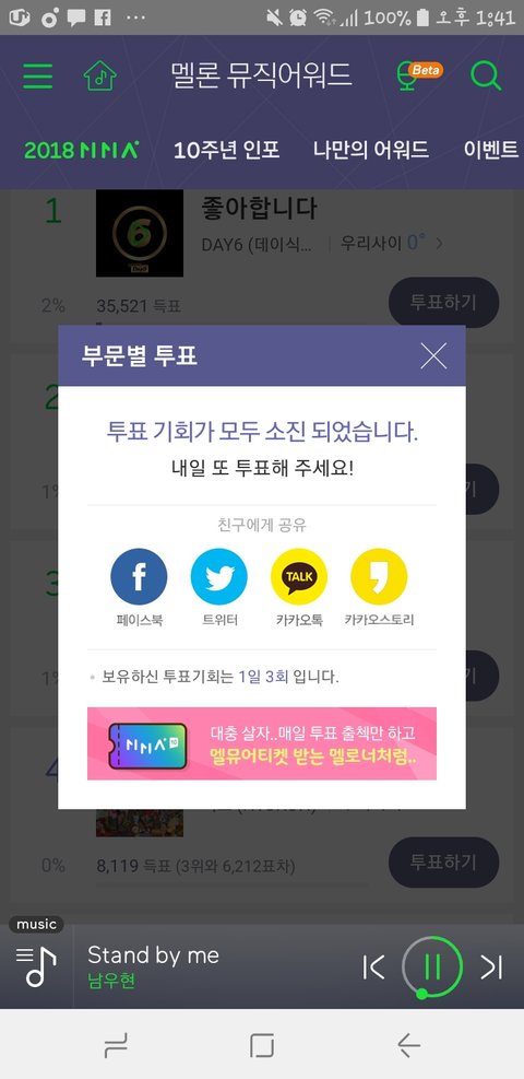 우리 락 투표 끝날때까지 딱 정해진 시간에