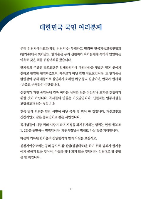 부패하고 낡은 전통 교단 한기총의 거짓됨과 부패를 국민 여러분께 고발합니다.