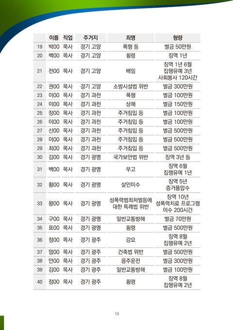 ■ 살인, 폭행, 납치, 감금 등 인권유린적 강제 개종 교육을 조장하는 집단입니다. 신천지예수교회의 급성장에 생존의 위협을 느낀 한기총은 신천지예수교회에 대해 거짓말을 지어내어 유포했고, 한기총 소속 개종 목사들은 폭력, 감금, 납치를 수반하는 인권유린적 강제 개종 교육을 실시하고 있습니다. 개종 목사들은 먼저 청년 부모들을 미혹하고 사주하여, 그 자녀의 입에다 반창고를 붙이고 손과 발에 수갑을 채우고 원룸에 감금하게 하고, 인신공격적 거짓말로 개종을 강요하고 있습니다. 또 강제 개종 과정에서 부모를 시켜서 강제로 휴학, 휴직 등을 시키고, 신천지에서 휴학, 휴직, 가출 등을 조장한다고 뒤집어씌우고 있습니다.