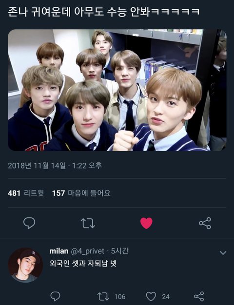 내일 수능 보는 수험생 준희들 모두 파이팅! 지금까지 수고했고 이제 드디어 해방이네!(나도 사실 수험생이야...ㅎㅎ) 앞으로 다 같이 꽃길만 걷자~