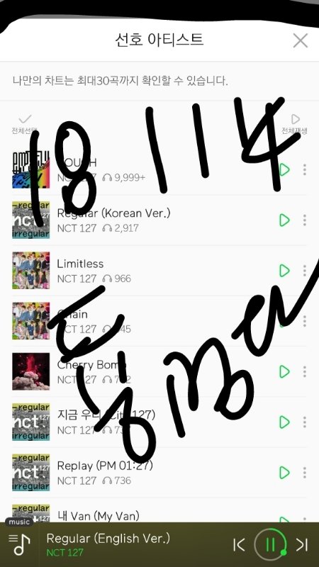 음원발매일부터 스밍한 레귤러 포함 수록곡 누적횟수