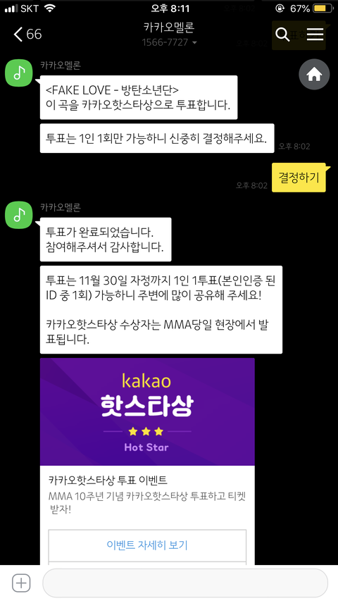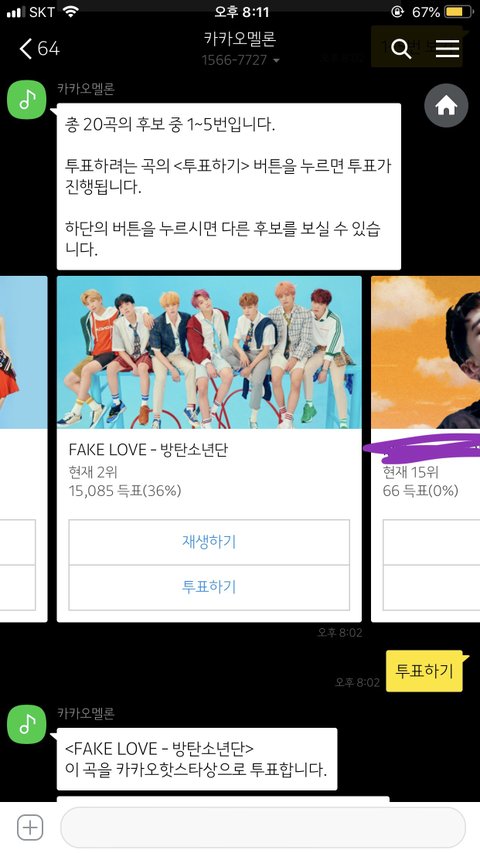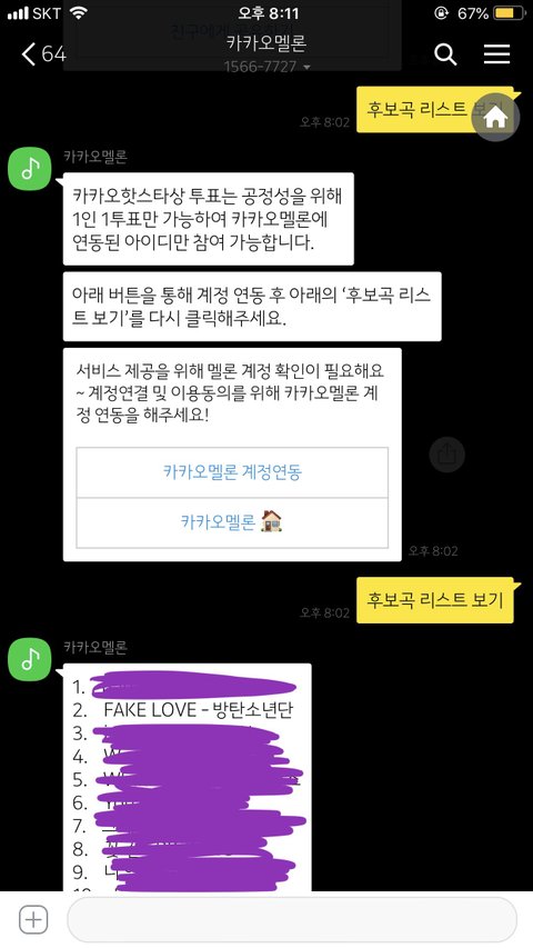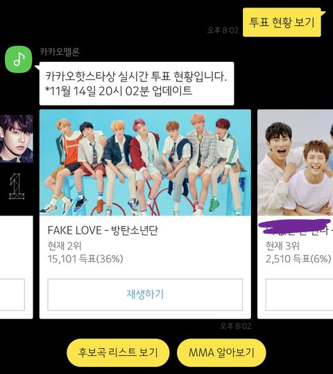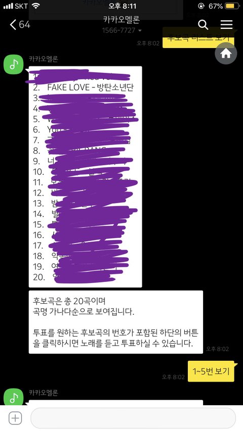 2. 투표하겠냐 하면서 후보곡 리스트랑 투표현황 노란 버튼 두개가 나오는데 리스트 클릭하면