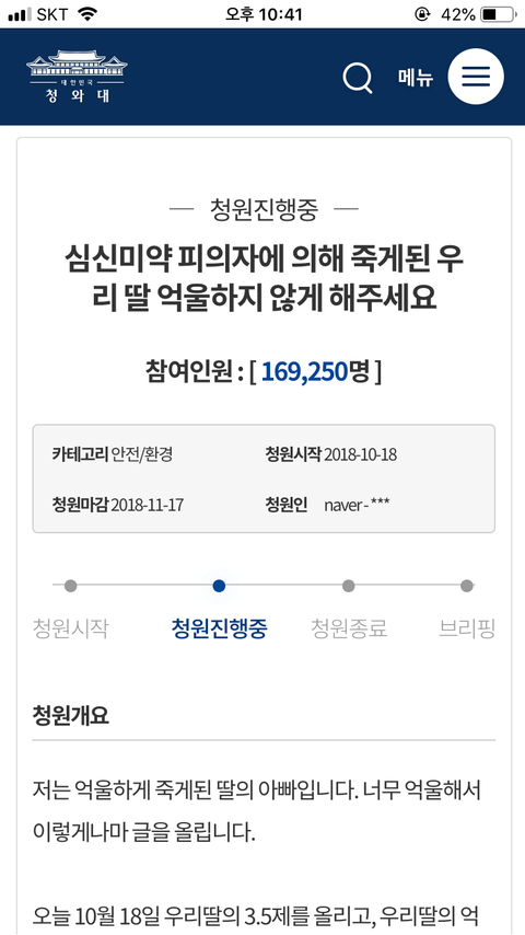 두서 없고말솜씨 없는 글 읽어 줘서 고마워..정말 지푸라기 잡는 심정으로 올려.. 댓글에도 청원 링크 올려 놓을게..