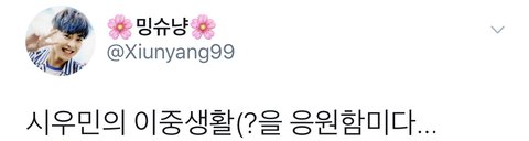 지금 시우민형 이중생활한다고 온 동네에 소문다났어여ㅠㅠㅠ