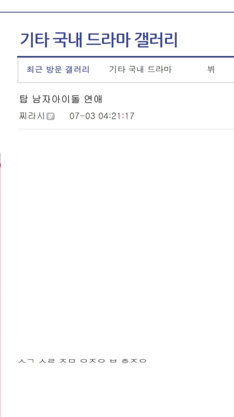 전부터 깊갤러들 두 그룹 서로 까게 하려고 되도않는 ㅇㅁㄱ달기도 귀찮을만큼 되도 않는 망붕 글 올리고(증거라며 가져온게ㅋㅋㅋㅋㅋㅋ) 추천 몇개 누르면 팬들이 빡쳐서 반대 폭탄 날리니 자연스럽게 추반 글 맞춰지는 글로 만들어내는거임 조회수는 뭐 알아서 올라갈테고 걍 반대도 댓글도 아무것도 달지 말고 관심 끄는게 답 ~~ 깊갤 캡쳐 들고온것도 어디서 온건지 그저 투-명 혹시 모르지 저 글도 지가 쓰고 들고왔을지도ㅋㅋㅋㅋㅋ ╋~~~~~~지금 깊갤충들 말투바꾸면서 댓글 다는 중 관심주지말자~~~~~~