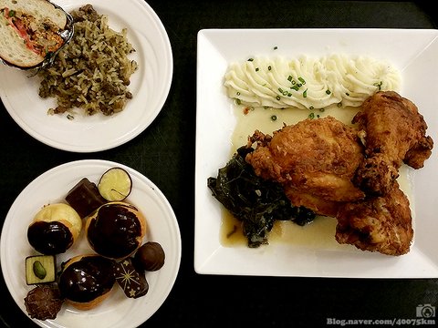 또 다른 미국 남부식 요리, 더티 라이스와 프라이드 치킨.