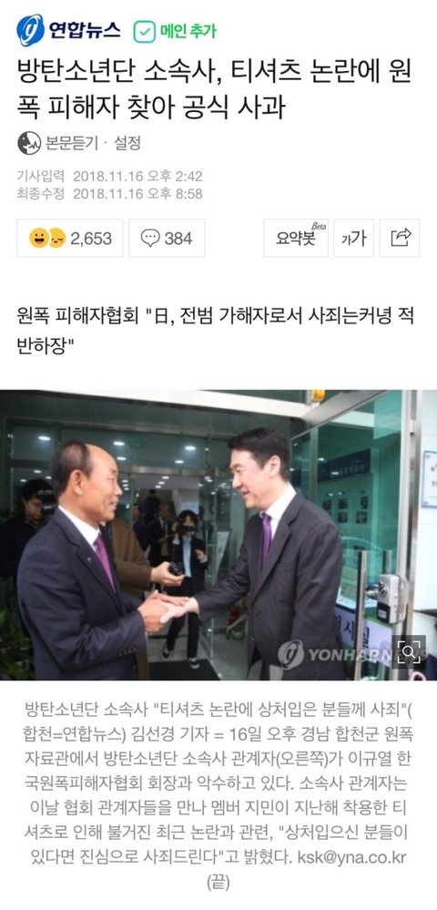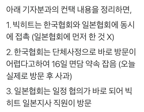 근데 한 아미가 MBC 홍신영 기자님과 접촉해서 얻은 바로는 빅히트는 한일 양측의 원폭피해자 협회에 >>동시에<< 접촉했으며 한국 피해자 협회와는 시간상 면담이 미루어진 것으로 드러남 오늘 한국 협회와도 면담을 통해 사과를 전달함