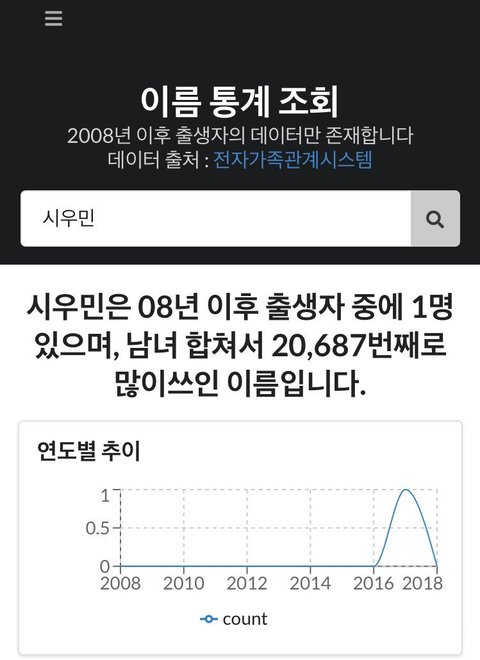 ㅋㅋㅋㅋ 어떤 분이 시우민으로 이름검색해봤는데 딱 1명 있더래