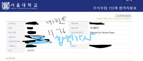 나 서울대 1차 붙었어