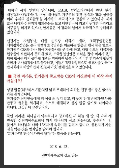 ■ 국민 여러분, 한기총과 종교방송 CBS의 거짓말에 더 이상 속지 마십시오!