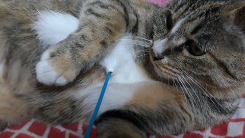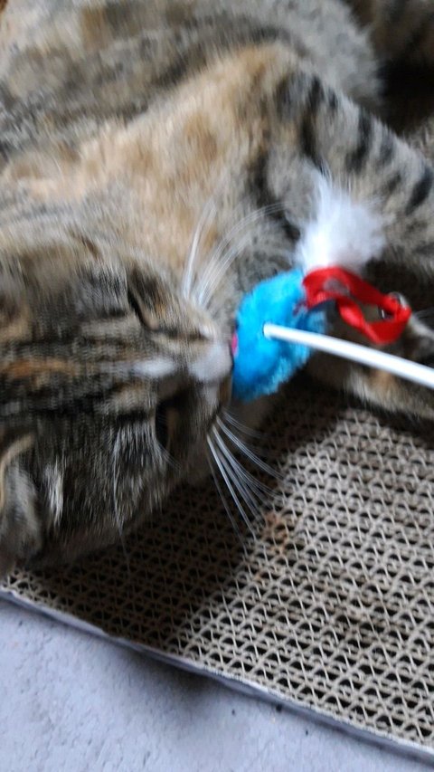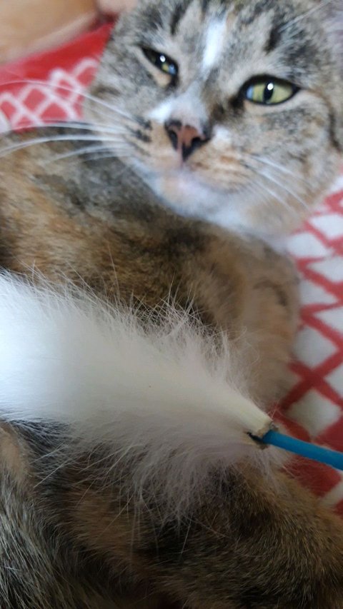 캣타워에 좀 올라가라고 깃털 흔들면서 유혹하고.