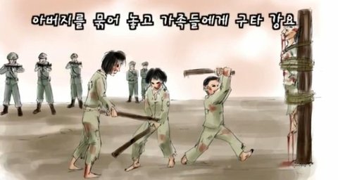 소똥에서 옥수수 골라먹는데 그것마저 들키면 토 할 때까지 배를 때리고 임신한여성은 씨를 말려야하는데 임신했다고 성기를 삽으로 찔러서 죽였다”