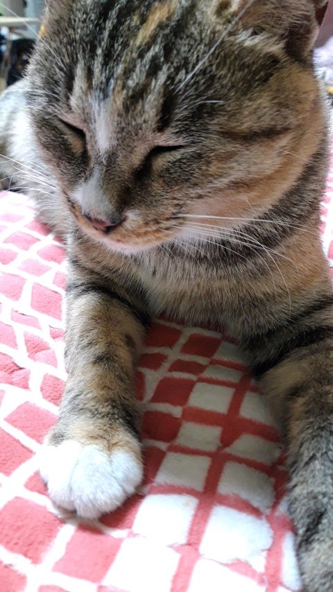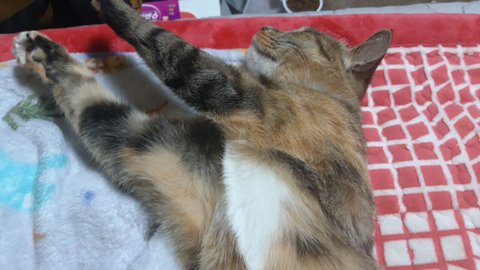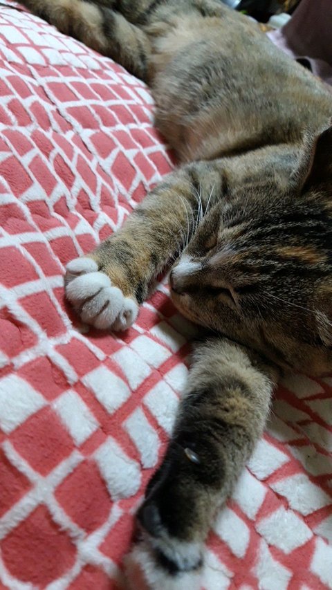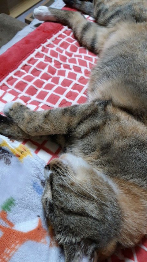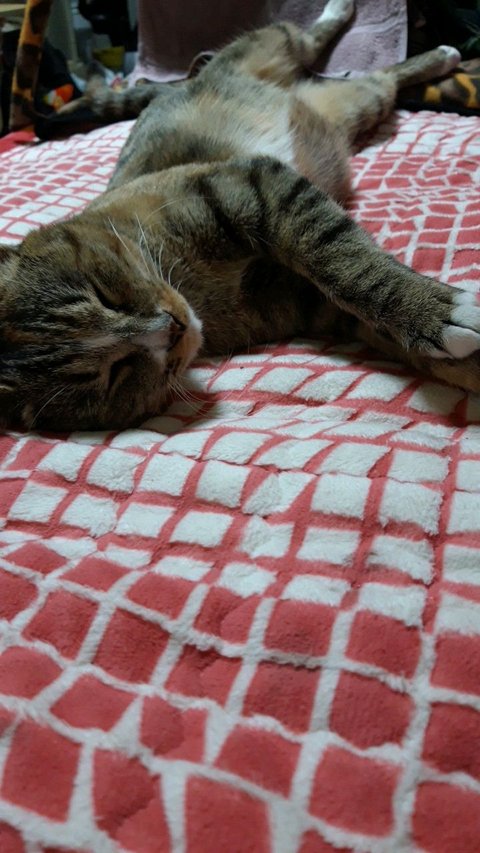 우리 애기 대박이 . 먹을 거도 장난감도 다 필요 없고 . 따뜻한 전기장판에서 사람으로 빙의 하여 자는걸 제일 좋아하네요 ~~! 집사는 캣타워에 올라가는거 한번 보는게 소원인데. 애기라서.ㅜㅜ .