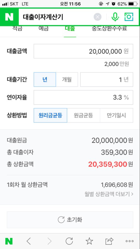 2천만원을 3.3프로 4년분할로 갚던도중