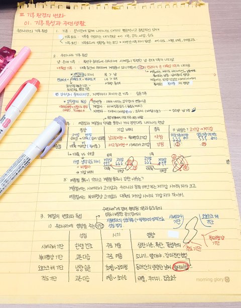 검은색 글씨는 대부분 문제집에 있던 요약본(기본개념)이고, 색깔펜이나 형광펜은 내가 중요하다고 생각하는 부분이야.
