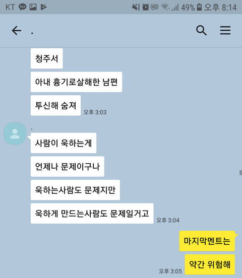 스스로 목숨을 끊을정도면 최소 인간쓰레기는 아니네 라고하길래,