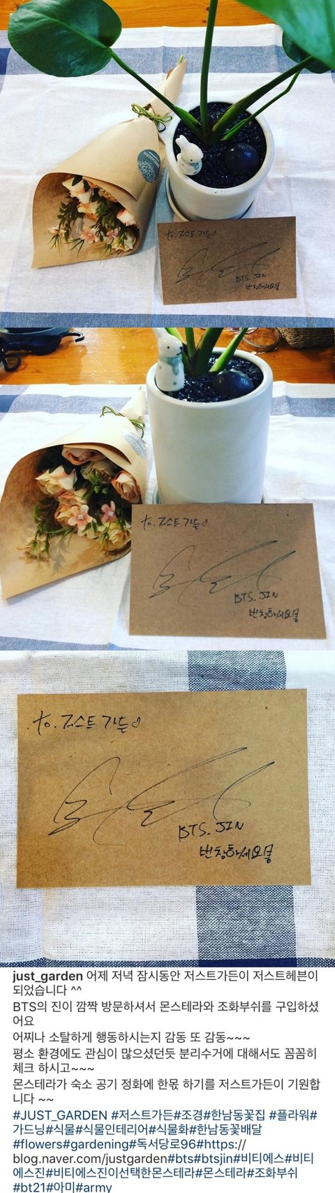 좋게 말하고 싶은데 정말 너무 이해가 안가서 묻는다 석진이가 꽃 사갔으면 뭐 어쩌라고?이게 팬톡 이삐들이 꼭 알아야할 정보이길해?저 꽃집 홍보하는걸 도와주라는거?저 꽃집에 아미들이 몰려가서 다시는 석진이가 꽃 사러도 못가는걸 바래?한번 다녀간 밥집도 저렇게 업체에서 유출해버리면 다시는 거기 밥먹으러 못가는거 모르냐? 글 지워라