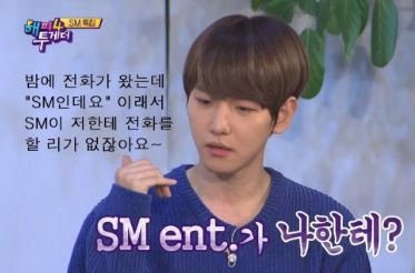 3사는 방송 3사 밖에 모르고, 오디션 보러 간 회사가 SM인 줄도 모르고 애국가 불렀는데 합격한 태용 청소하고 늦게 귀가하다가 캐스팅 매니저를 만난 재현 떡볶이 먹는데 모르는 사람이 엄마 전화번호를 물어봐서 안 알려줬더니 끝까지 쫓아와 결국 알려주고 SM에 입사하게 된 #세훈 입시 준비하다가 만난 사람이 기획사에서 나왔다면서 전화번호를 받아갔는데 SM이라 그러길래 사기인 줄 알고 주소를 물어보는 등 진짜 SM이 맞는지 여러 번 확인했다는 백현