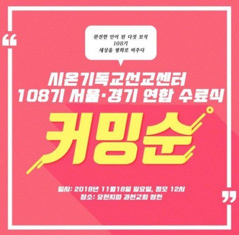 그러한 인원들이 모여 11월 18일 정오, 과천에 위치한 요한지파 본부 과천성전에서 열릴 이번 수료식은 다른 때보다 ‘더’ 특별하고 큰 규모로 열린다고 합니다.