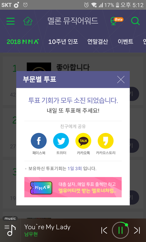 친구들한테 부탁해서 오늘 총 9표 ㅎㅎ