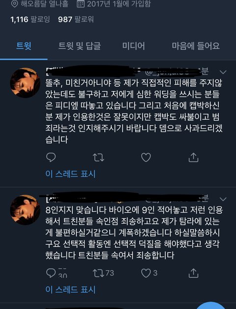 사과문올리고 계폭하라믄데 뭐가 잘못됏다고 사과문올리래