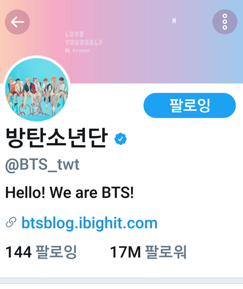 방탄 짹 팔뤄 1700만 돌파!!