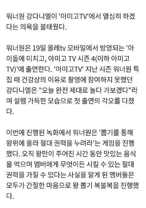 아미고TV 첫 출연 강다니엘, 제대로 놀다 가겠다 의욕 불태워