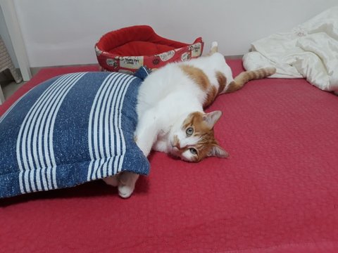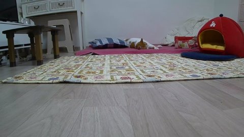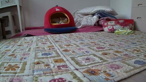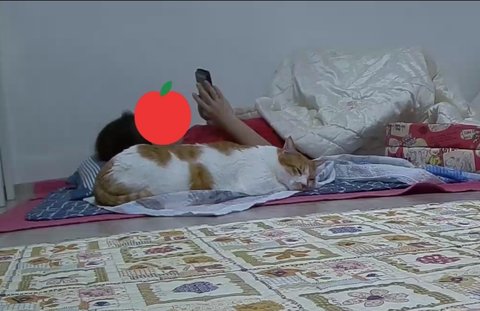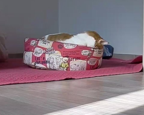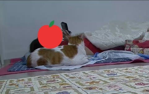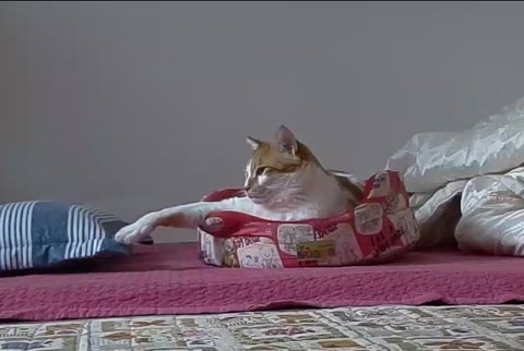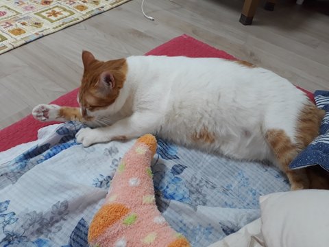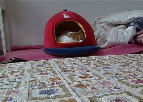 잠시 주춤하더니 다시 이불속으로 들어감.