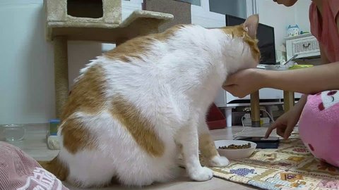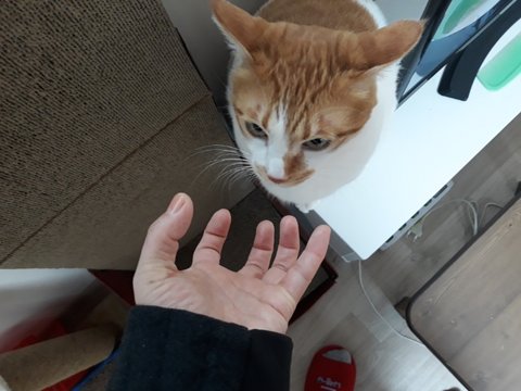 집사 손바닥도 사료와 함께 씹어먹고 있음.