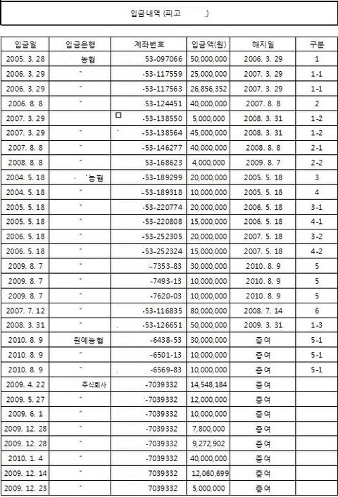 8번은 2009년 8월 31일 20,000,000원 입금내역도 개설일이 2009년 12월 9일이기에 입금