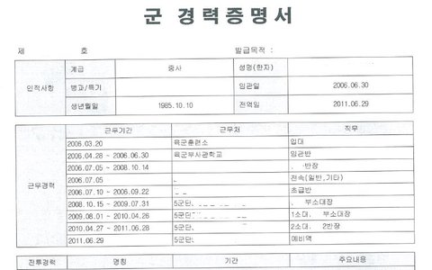 군 경력 증명서 입니다.