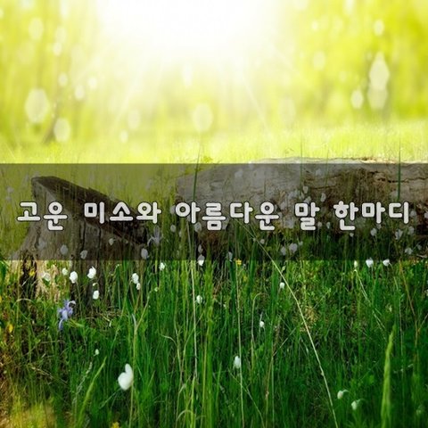 ♥ 고운 미소와 아름다운 말 한마디 ♥ 낯선 이에게 보내는고운 미소 하나는 희망이 되며어두운 길을 가는 이에게는 등불입니다. 미소 안에 담긴 마음은 배려와 사랑입니다.진정한 마음에서 우러나오는 미소는나를 아름답게 하며 누군가를 기쁘게 합니다. 댓가없이 짓는 미소는 내 영혼을 향기롭게 하고타인의 마음을 행복하게 합니다. 나를 표현하는 말은 나의 내면의 향기입니다.칭찬과 용기를 주는 말 한마디에어떤 이의 인생은 빛나는 햇살이 됩니다. 아름다운 말 한마디는우리의 사소한 일상을 윤택하게 하고사람 사이에 막힌 담을 허물어줍니다. 실의에 빠진 이에게 격려의 말 한마디,슬픔에 잠긴 이에게 용기의 말 한마디,아픈 이에게 사랑의 말 한마디 건네 보십시오.내가 오히려 행복해집니다. 화사한 햇살 같은 고운 미소와진심 어린 아름다운 말 한마디는내 삶을 빛나게 하는 보석입니다. 나의 아름다운 날들 속에 영원히미소 짓는 나이고 싶습니다.더불어 사는 인생길에 언제나 힘이 되는말 한마디 건네주는 나였으면 좋겠습니다. - 좋은글 -