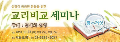 이에 새천지에서는 신랑되신 예수님을 맞이 할 수 있도록등과 기름을 채울수 있는 교리비교 세미나를 준비했습니다.(마25장)2018년 11월 축제, 핫한 교리비교 세미나에 여러분을 초대합니다.