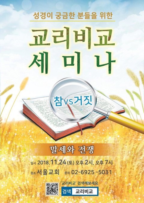 이에 새천지에서는 신랑되신 예수님을 맞이 할 수 있도록등과 기름을 채울수 있는 교리비교 세미나를 준비했습니다.(마25장)2018년 11월 축제, 핫한 교리비교 세미나에 여러분을 초대합니다.
