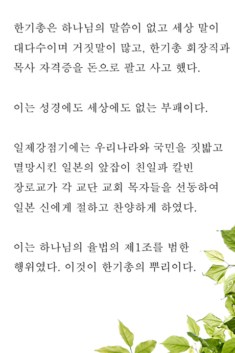 부패하고 낡은 전통 교단 한기총의 거짓됨과 부패를 국민 여러분께 고발합니다.