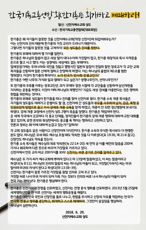 신천지예수교회 성도 일동
