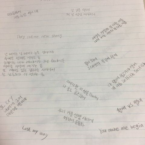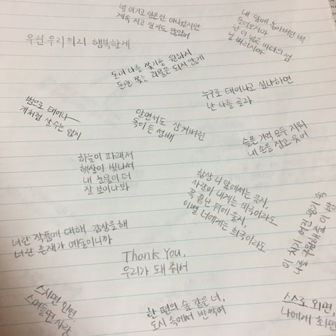 6학년 때 한 거 같은데 ㅋㅋㅋㅋㅋㅋㅋㅋㅋㅋ 방탄 팬이라 가사 글귀 적고 저 때 한참 빙의글에 빠져 있어서 작가 된답시고 저 ㅈ랄 한 거 같은데;;;;;;;;;;; 진짜 개민망하다