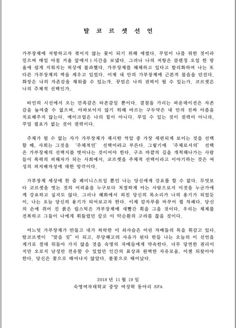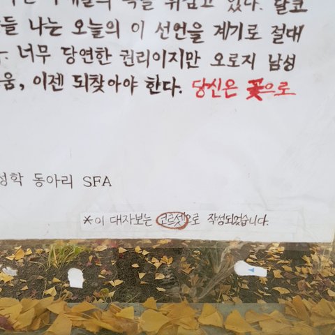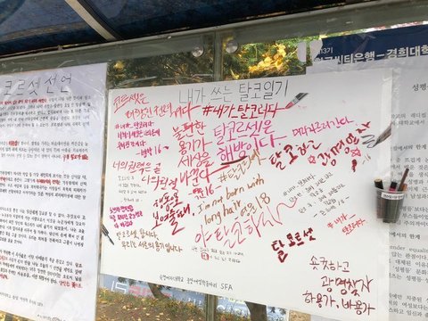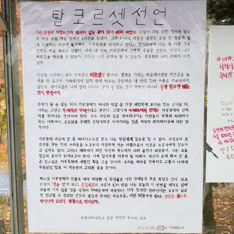 숙명여대에서 페미니즘을 주제로 쓴 대자보.. 이걸 다 화장품으로 썼대..