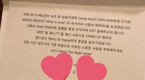 트와이스 전원이 참석해 축가를 불러주었다고 또 글이 올라왔음,, 대박이얌