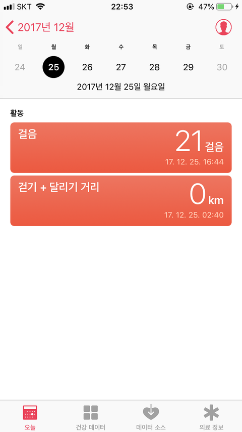 나 작년 크리스마스에 걸은 걸음 수...^^;