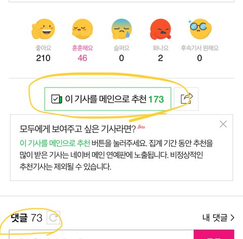 훈훈해요 누르고, 기사 메인추천, 댓글 쓰기ㄱㄱ