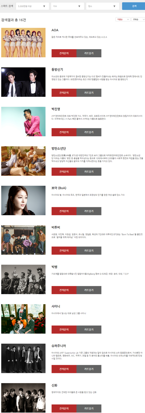 2000~3000만원 : JBJ, SF9, 구구단, 김건모, 러블리즈, 레드벨벳, 브라운아이드걸스, 서인영, 선미 등