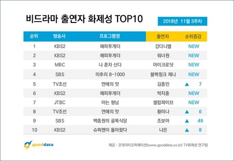 11월3주차 비드라 출연자 화제성 1위 강다니엘