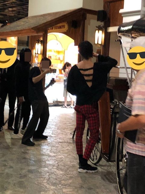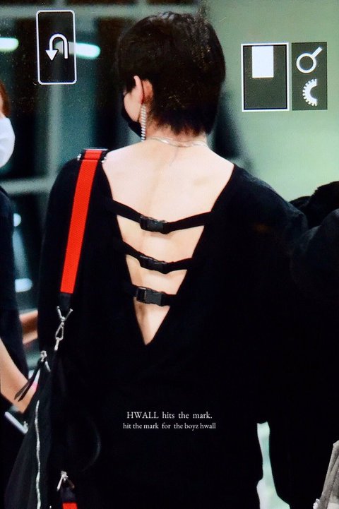 깊게 파인 등에 끈 달린 옷입은 남돌