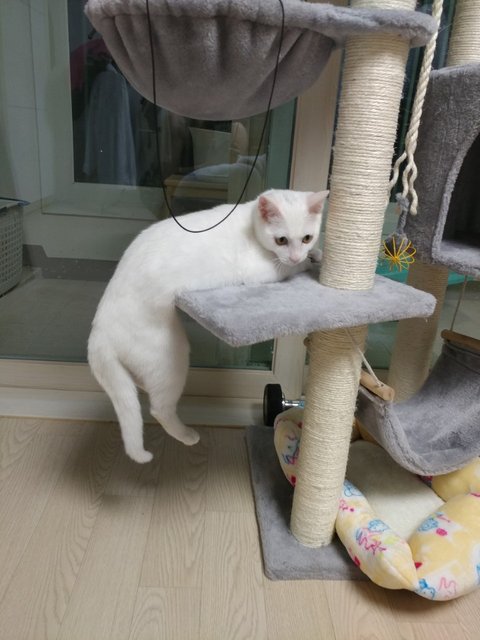 저때는 처음으로 캣타워 올라가다가 힘빠져서 걸쳐있는걸 운좋게 찍은날이에요.
